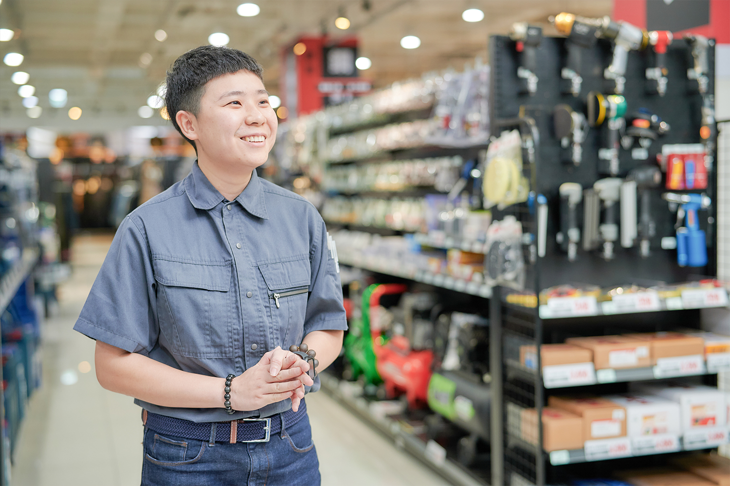 雖然先前在第一線協助顧客解決問題可以獲得很多成就感,但現在轉任到商品部讓我有更寬廣的視野去規劃,依照每間店鋪的大小、位置等,去思考店鋪的陳列和樣貌,盡力呈現出夢繕喜多樣化的魅力,是目前工作中我最喜歡的部分,未來希望能和公司一起讓夢繕喜擴大成長,深耕台灣,讓大家找五金工具、居家修繕、生活百貨就會第一時間想到夢繕喜。